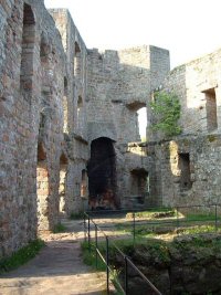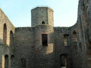 based on the structural components, a period between 1150 and 1200 can be supposed when one considers the restoration of the stone fortress as the earliest date of the castle's construction (1168). The upper castle, or keep, was built on a 12 meter high shelf of rock, and has a unique seven sided high tower. The Castle is well preserved. From atop the tower platform one has a good view over it, it's lands, and far parts of the Palatinate forest.